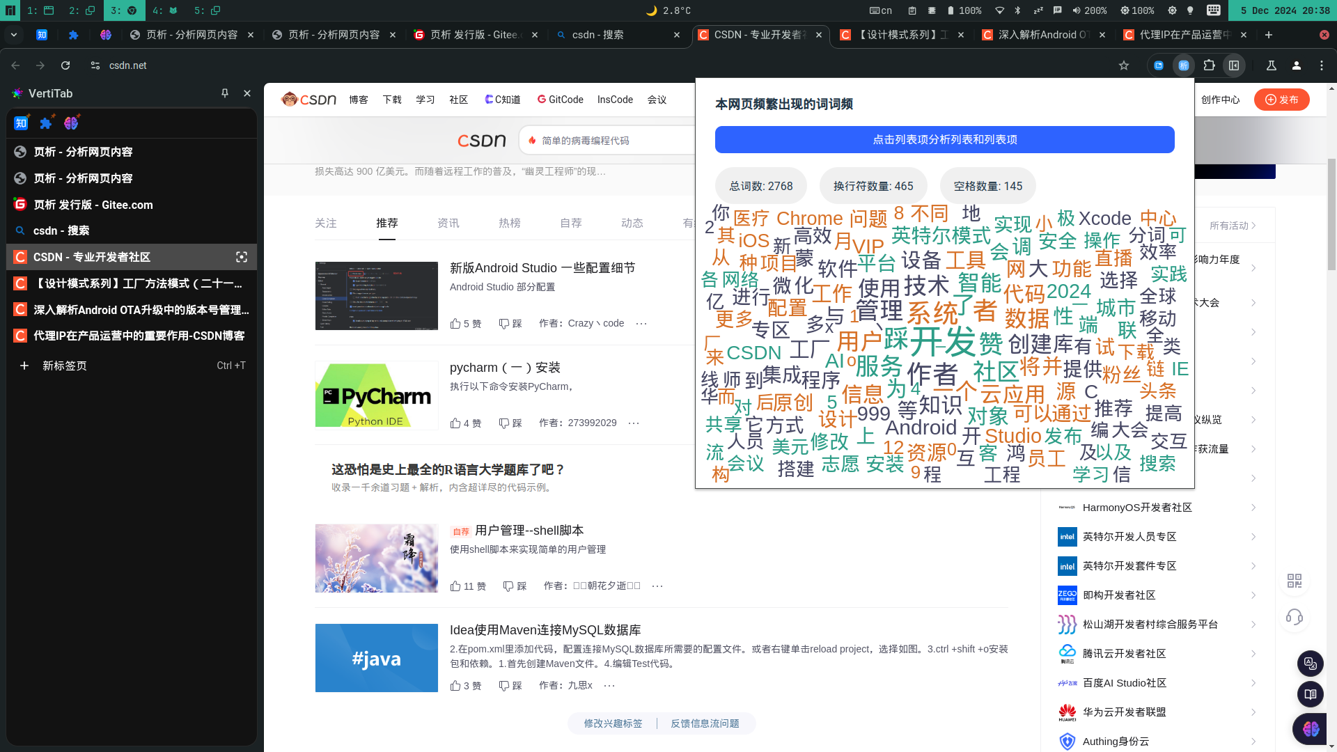 显示频繁出现的词的词云图关于开发者